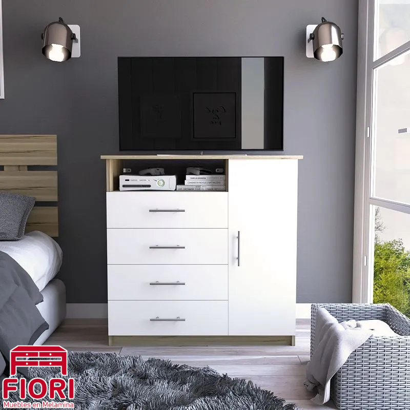 Una cómoda de melamina es un mueble funcional y elegante, diseñado para almacenar ropa y objetos personales, hecho con tableros de partículas recubiertos de melamina, un material sintético que destaca por su resistencia y fácil mantenimiento. Este tipo de cómodas es muy popular por su combinación de practicidad, estética y precio accesible.